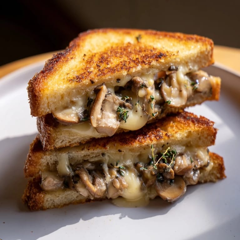 Save to Pinterest There's something about the smell of mushrooms hitting hot butter that stops me mid-morning. I discovered this sandwich years ago when I had nothing but bread, cheese, and a mysterious box of cremini mushrooms in my fridge, and I wanted something more interesting than the standard grilled cheese I'd made a thousand times. That first bite—the earthiness of the mushrooms meeting the sharp creaminess of Gruyère—changed how I thought about what could happen between two pieces of bread.