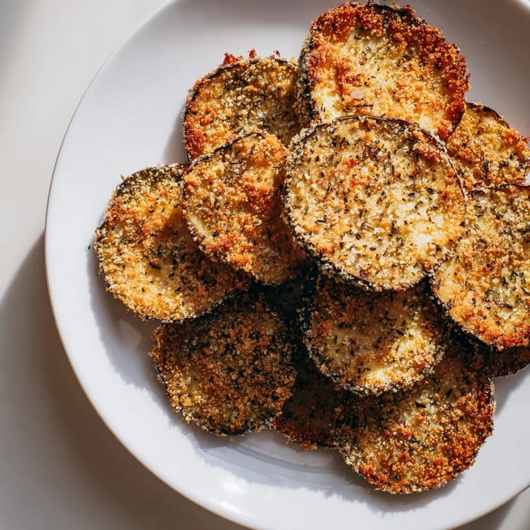 Save to Pinterest I discovered these crispy eggplant chips completely by accident while trying to use up a farm-stand haul before heading out of town. My cutting board was a mess of purple slices, and instead of committing to full eggplant Parmesan, I decided to treat them like fries—thin, breaded, and baked until golden. The result was so addictive that my kids were eating them straight off the cooling rack, and I've been making them ever since as the easiest way to get people genuinely excited about vegetables.