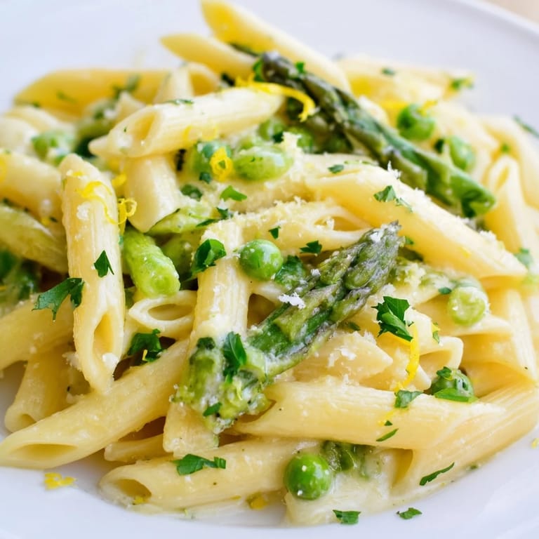 Save to Pinterest The first time I made this pasta, my roommate stuck her head in the kitchen and asked if I'd bought flowers. It was just the asparagus and green beans cooking, but that's how bright and fresh this dish smells. Spring vegetables deserve more than steaming, and tossing them into a creamy garlic sauce makes them feel like a treat rather than an obligation.