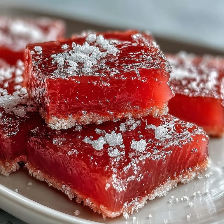 I made this for my sister's book club last spring, nervous because I'd only attempted it once before. When I cut into the cooled batch and held up a square to the light, the room actually went quiet—everyone was mesmerized by how it caught the afternoon sun, glowing like stained glass. That moment taught me that food made with intention carries a weight that goes beyond flavor; it becomes a small ceremony shared with people you care about.