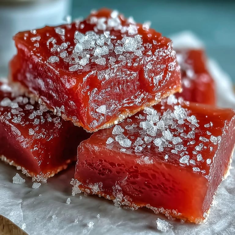 Guava cheese is remarkably forgiving once made; it keeps at room temperature in an airtight container for up to two weeks, making it perfect for gifting or stashing for afternoon cravings. Serve it alongside tea, with cheese and crackers for an elegant plate, or simply on its own as a small sweet moment. The superfine sugar coating is purely optional but it does add a pleasant textural contrast and catches light beautifully on a platter.