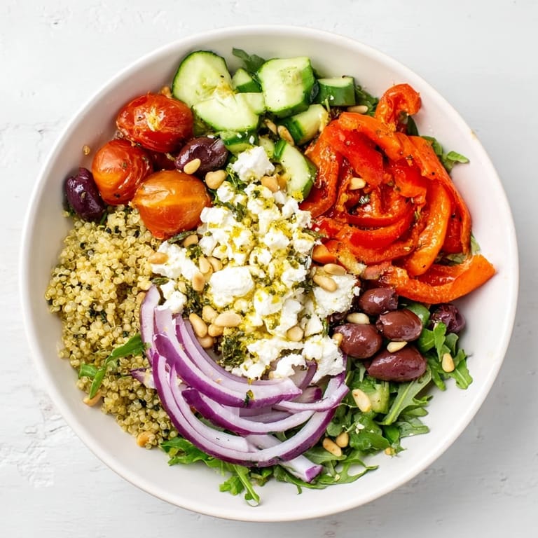 Save to Pinterest A vibrant, wholesome bowl featuring fluffy grains, crisp greens, and Mediterranean-inspired toppings. Perfect as a light meal or a nourishing side, this dish bursts with fresh flavors and color.