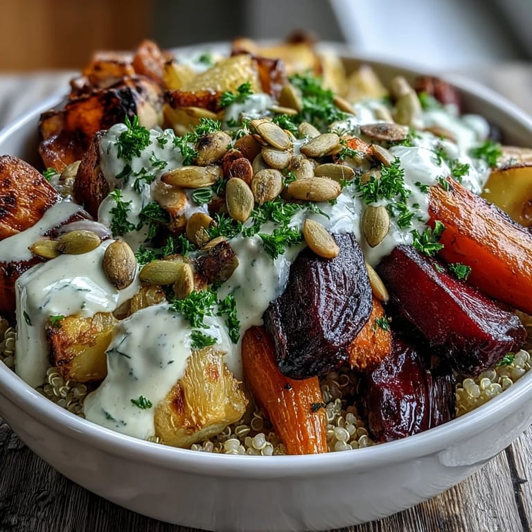Save to Pinterest There's something about roasting root vegetables that turns a quiet weeknight into something special—the way your kitchen fills with this deep, caramelized smell that makes you forget you're eating something incredibly healthy. I discovered this bowl on a chilly autumn evening when I had a crisper drawer full of vegetables and absolutely no inspiration, but somehow combining them with fluffy quinoa and a silky tahini drizzle created something I've made at least twice a week ever since. The colors alone—those jewel-toned beets next to golden carrots—make you want to photograph your lunch before eating it. What really won me over was how the roasting process caramelizes the natural sugars, turning these humble vegetables into something almost sweet and deeply satisfying. It's become my go-to bowl whenever I need to feel grounded.
