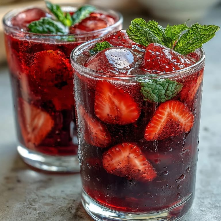 Serve this refresher in tall, clear glasses to showcase its beautiful vibrant color. Add plenty of ice to keep it perfectly chilled, and garnish with fresh strawberry slices on the rim or floating on top along with a sprig of fresh mint for an elegant presentation. This beverage pairs wonderfully with light breakfast items like yogurt parfaits, fruit salads, or pastries. It's also an excellent choice for brunch gatherings, summer parties, or as a refreshing afternoon pick-me-up. For a special touch, freeze some of the strawberry mixture in ice cube trays and use these flavored ice cubes to prevent dilution as they melt. Consider serving alongside healthy snacks or as a palate cleanser between courses at a casual outdoor meal.